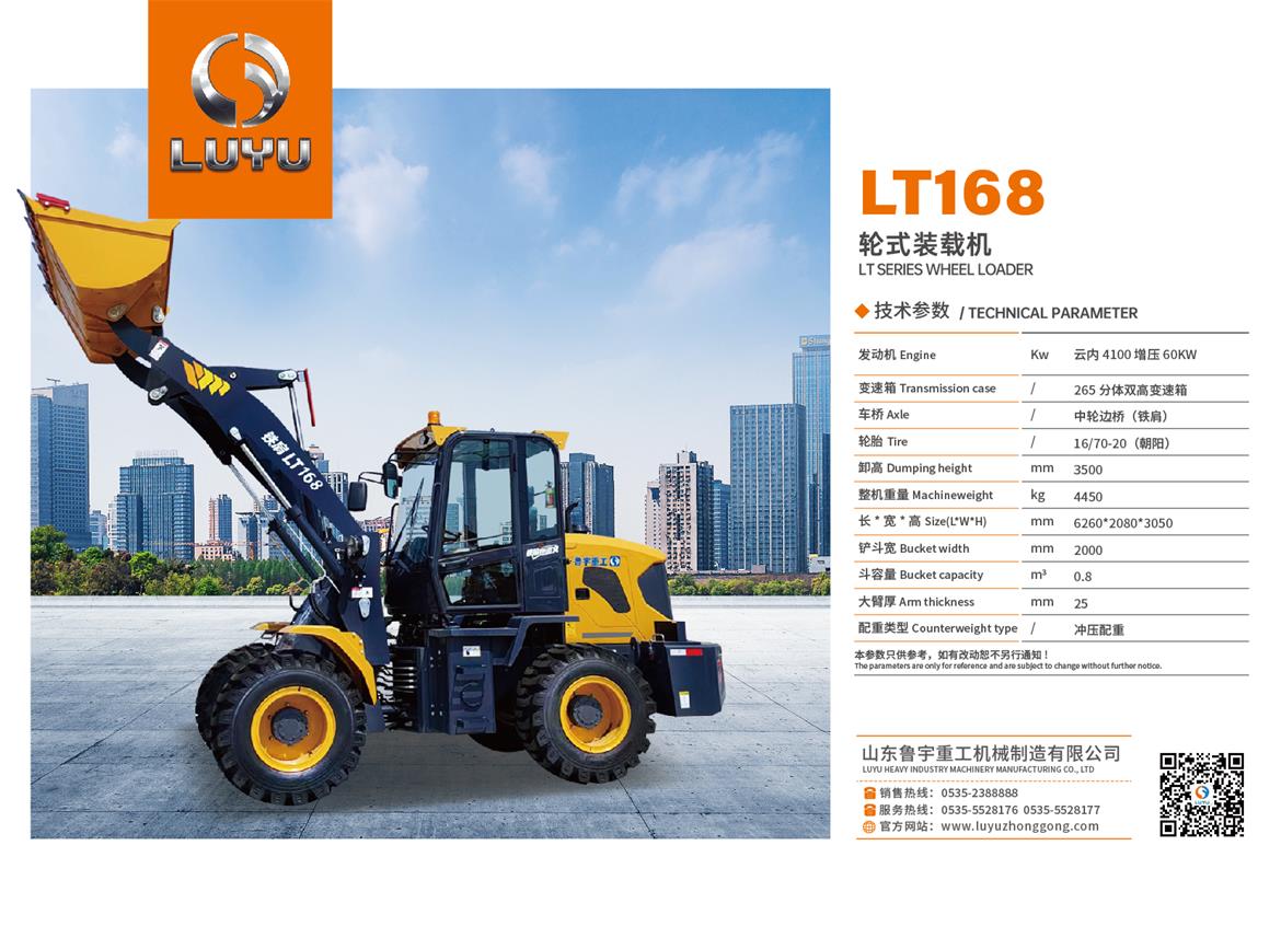 Lu Yu heavy loader series of products, are the best choice of the domestic and international best quality ?accessories, reliable quality, in line with the needs of human nature unique fuel nozzle guide set, oiling is simple, easy to centralized grease ?Fine pipe design, rationalization of the pipeline layout, beautiful and practical, easy to check and repair ?Bucket, automatic flat, reduce the fatigue of the driver, single pump shunt, with priority sensing steering system, energy saving ?Single lever control, reduce driving fatigue and improve work efficiency, four wheel clamp disc brake safety and reliability ?Design, small turning radius, load sensing coaxial flow amplification, light, flexible and efficient. ?Ideal operating speed and a 40 degree shift angle significantly improve work efficiency ?International standard noise reduction technology, to protect the driver's physical and mental health, to ensure that the work efficiency ?Industry leading cooling system to ensure continuous operation at high temperature.