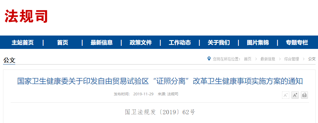 近日,國家衛健委發布《關于印發自由貿易試驗區“證照分離”改革衛生健康事項實施方案的通知》(以下簡稱《通知》),公布12個醫改實施方案。此次衛生健康領域的“證照分離”是要貫徹落實《國務院關于在自由貿易試驗區開展“證照分離”改革全覆蓋試點的通知》…