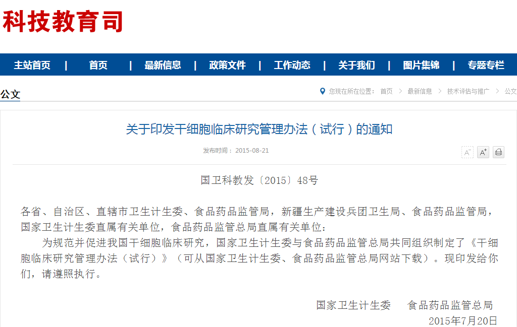 各省、自治區、直轄市衛生計生委、食品藥品監管局,新疆生產建設兵團衛生局、食品藥品監管局,國家衛生計生委直屬有關單位,食品藥品監管總局直屬有關單位:為加強我國干細胞制劑和臨床研究質量管理,國家衛生計生委與食品藥品監管總局根據《干細胞臨床研究管…